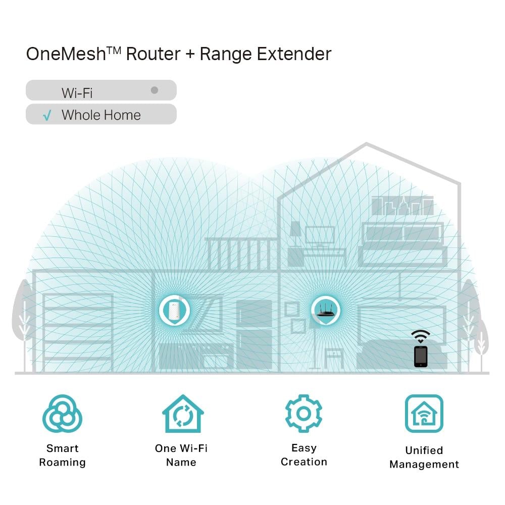- شبكة Mesh متكاملة: ينشئ شبكة Mesh عند الاتصال براوتر TP-Link OneMesh™ لتغطية سلسة لجميع أنحاء المنزل.